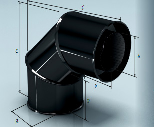 Составной частью дымовой системы, служащей для изменения пути дымового канала, является сэндвич-отвод с углом наклона в 90 градусов. Благодаря таким элементам можно обойти любые помехи на пути дымохода.